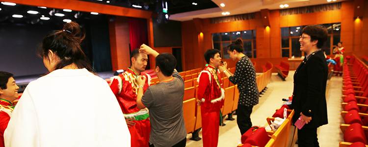 bg真人试玩党委副书记兼工会主席张洁(右1)在彩排现场鼓舞士气