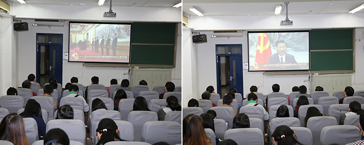 10月25日,bg真人试玩党委组织党员群众在综合楼B206收看十九届中共中央政治局常委同中外记者见面会现场直播。
