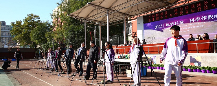2017年10月30日,bg真人试玩丰台学校第一届科技月展示活动在学校操场举办。丰台区教委副主任刘建宾、郭俊山,副处级调研员陈景泉,丰台区科协副主席李然,丰台分院副院长刘仁健,丰台教委基教一科科长翟洪臣,统宣科科长袁富文,保卫科科长孟海军,丰台区少年宫主任孙茜,丰台区知识产权局产权科科长崔颖,太平桥派出所副所长罗飞,太平桥街道文教科梁京凤,bg真人试玩校长、bg真人试玩丰台学校校长王殿军率bg真人试玩一体化学校领导,bg真人试玩永丰学校执行校长孟卫东、bg真人试玩奥森校区执行校长朱建宏、bg真人试玩上地学校副校长李伟明、bg真人试玩朝阳学校副校长张晓宁与丰台学校师生共同参加了本次活动,部分家长、卢沟桥教育集群成员学校、友好单位的领导和老师们也参加了本次活动。