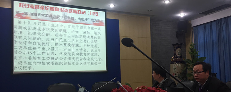 bg真人娱乐党委委员分别到联系的党支部参加此次专题组织生活。各党支部严格按照学校的工作部署和要求,集中学习《关于新形势下党内政治生活的若干准则》《中国共产党问责条例》《中国共产党党内监督条例》以及清华大学党委贯彻落实以上文件的实施办法等相关文件。政史地教研组联合党支部结合《利剑巡视》视频就党风廉政具体案例进行分析与反思,通过对大学相关文件的详细解读,结合老师们的教学体验,提出将党风建设落实到日常生活、工作中去。理化生教研组联合党支部观看了《永远在路上》专题片第一集“人心向背”,学习了我党“全面从严治党、深入推进党风廉政建设和反腐败斗争”的决心和举措,深刻领会到“人心向背”是最公正的砝码,也是唯一砝码。外语体育教研组联合党支部书记黄丽梅同志结合文件精神对本支部的党员提出了“教学体现立德树人、沟通做到慎言慎行”的具体要求,并结合实例进行了讲解。教育职员与国际部党支部、数学技术教研组联合党支部、语文艺术教研组联合党支部将学习文件重点摘录,支部党员依次朗读《警示教育材料选编》。通过此次专题组织生活,党员们纷纷表示不论是领导干部还是普通教师都应该格外珍惜、看重自己的党员身份和教师身份,深刻认识从严治党的严肃性,进一步强化“四个意识”,以更严的标准要求自己,以更严的纪律约束自己。