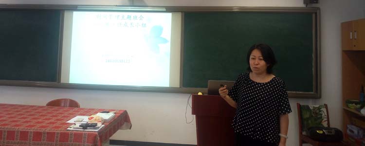 最后,心理中心王美荣老师对老师们进行了时间管理主题班会的培训,通过幻游十年后的自己、时间馅饼、生涯画册等活动,阐述了现代时间管理的内涵,指出了目标管理的意义,并介绍了目标管理的具体方法。