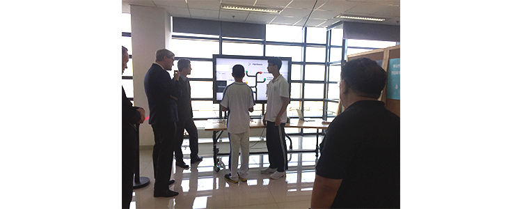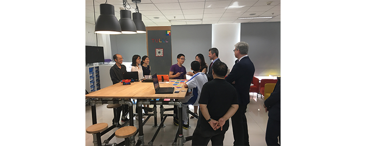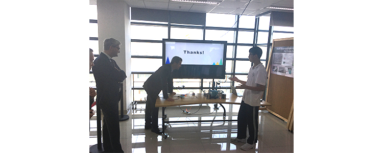 2017年9月24日上午,在清华大学终身学习实验室,bg真人试玩创客空间、高研实验室的学生李雅轩、刘健坤、左思青、谈恺辰向丹麦王储展示了其创新作品,获得了一致好评。