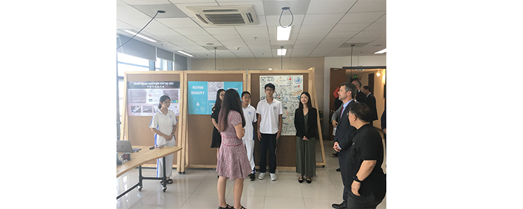 当日,在华访问的丹麦王储腓特烈(HRH Crown Prince Frederik)、丹麦高等教育与科学部部长瑟伦·平德(Soeren Pind)访问清华大学,还出席了清华大学主办的“培养未来领导者——实践、创意与社会价值”中国—丹麦教育座谈会,并参观了清华大学终身学习实验室。由于bg真人试玩创客空间、高研实验室的学生长期在清华大学终身学习实验室进行可持续发展目标(SDG)项目的研究学习,此次,初1514班李雅轩、初1506班刘健坤、高1612班左思青、初1602班谈恺辰同学在bg真人试玩科技中心主任邱楠老师的带领下,作为中学学生代表进行创新项目展示,并与来访的贵宾们进行交流。