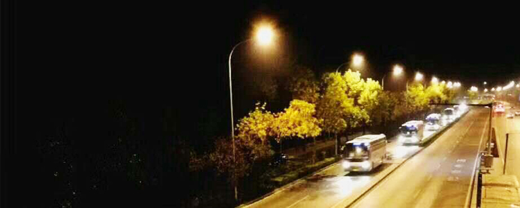 凌晨大巴车载着师生朝着天安门广场驶去