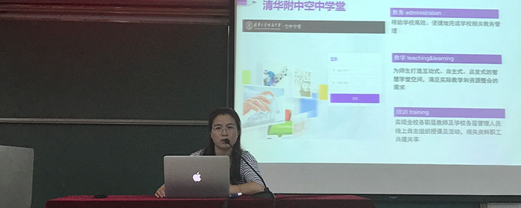 随后学校邀请中华英才基金会的副主任赵会杰介绍学校最新开发的空中课堂平台,从校本课程选课系统、学习系统、云盘系统、档案系统四个部分详细展示了平台搭建的意义,具备的功能等,后由负责开发的老师向各位教师演示如何具体操作。