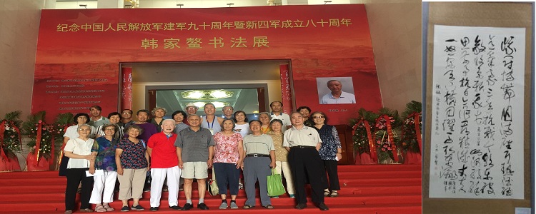 2017年7月31日,bg真人试玩离退休党支部组织党员特色活动,到北京民族文化宫参观“纪念中国人民解放军建军九十周年暨新四军成立八十周年——韩家鳌书法展”,离退休六个党支部共有22人参加了活动。