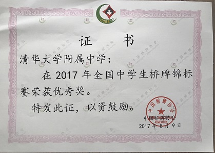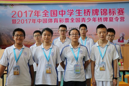 8月5~9日,2017年全国中学生桥牌锦标赛在武汉西藏中学举行。由初15级学生王程、马帅、王子非、张宇尊、齐子路、姚岸奇、刘佳音、王一淳8位同学组成的bg真人试玩桥牌队参加了初中组团体赛和双人赛。经过激烈角逐,最终获得团体优秀奖。