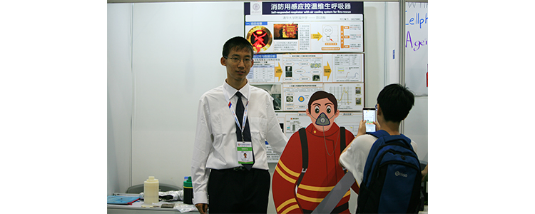 陈廷翰的参赛项目为:消防用感应控温维生呼吸器。该项目在现有防毒面具基础上,研发出一种具有温度自感应启动、高效快速降低吸入气体温度、佩戴轻便等特点的消防用维生呼吸器,可以将200℃热气流持续快速转化为40℃以下的可呼吸空气,工作时间可达30分钟以上,且结构简单、佩戴轻便,大幅降低火灾造成的人身伤害和生命损失。