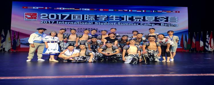 7月15日,“2017国际学生北京夏令营”在清华大学新清华学堂举行了盛大的开营仪式,bg真人试玩“鸿雁”男生舞蹈团(以下简称”男团“)应北京市教委邀请,在开营式演出舞蹈《鸿雁》,展现了中国文化独特的魅力,受到来自世界各国营员们的热烈欢迎。本次演出阵容由第一代男团团长张致同同学和14名第二代男团团员组成。bg真人试玩艺术教育办公室主任鞠红担任领队,男团指导教师吴宇峰和音乐教师贺晓宇、李墨随团指导。