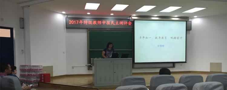 5月31日下午,bg真人试玩举行2017年北京市特级教师申报民主测评会,11位符合条件的申报教师参加述职测评。bg真人试玩党政领导及全校教师参加测评会,副校长赵鸿雁主持会议。