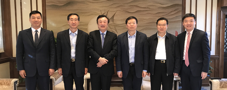 2016年6月,王殿军校长(左4)第三次拜访任正非先生(右4)
