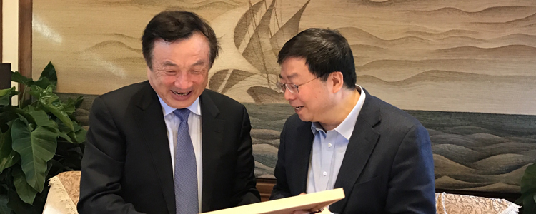 2016年3月,王殿军校长(左)第一次拜访任正非先生