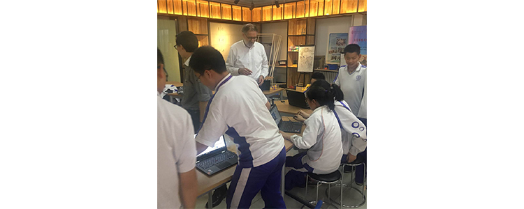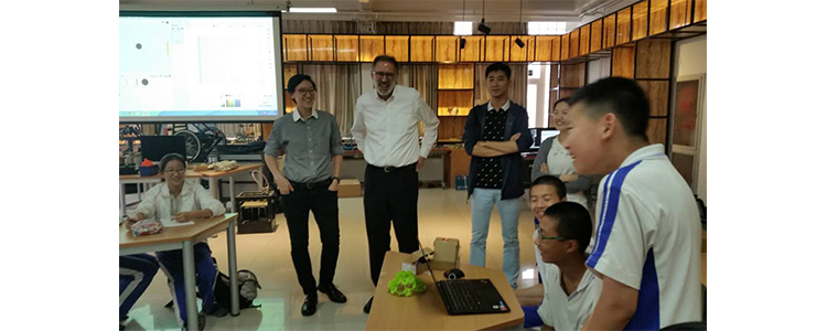 5月22日下午,Scratch创始人Mitchel Resnick教授参观bg真人娱乐创客空间,并和初一年级20余名小创客们进行互动、交流。bg真人娱乐科技办公室邱楠老师的陪同参观。