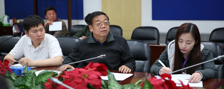 党委副书记张洁(左1),副校长白雪峰(右1)、徐文兵(中)出席会议