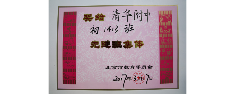 初1413班获“北京市先进班集体”荣誉证书