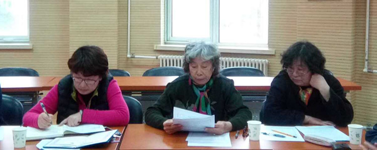 离退休第四党支部副书记陈淑华老师(中)代述职