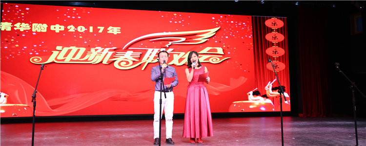 附中工会委员为大家以幽默风趣的“三句半”的形式向大家拜年,拉开了联欢会的序幕。王殿军校长紧接着用热情洋溢的贺词向附中教职工拜年。在随后的联欢表演中,王校长还给大家带来了即兴独唱《父亲》,以此为全体教职工送去阖家欢乐的祝福。随后全体校领导为正值本命年的教职工们发放了吉祥物纪念品。