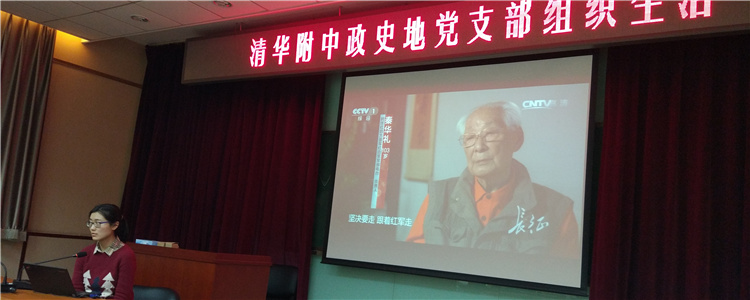 针对思想政治工作的特殊性,支部特别安排了马红红老师就“纪念长征胜利80周年”做了相关主题报告,马老师发挥历史学科的理论优势,为支部同志清晰描绘出从“井冈山星火”到“延安新生”的革命征途。随后,马老师挑选了“雪山”、“草地”主题让支部成员集体观看了央视相关纪录片视频。