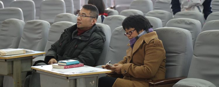 两个环节过后,唐中云老师和朱亮老师分别对鉴赏题和朗诵题进行了细致入微的精彩点评。唐中云老师就鉴赏题的采分点,选手的答题情况等做出了详细的分析,并提出了选手们有待提升的方面。朱亮老师则对两班选手朗诵题的表现进行了深入浅出的点评,并在最后阐述了自己对《满江红》这首诗的情感的理解。为了给同学们做出范例,朱亮老师还亲自朗诵了这首词的下半阙,为同学们展示了如何处理朗诵时音调高低的变化,获得全场同学热烈鼓掌。