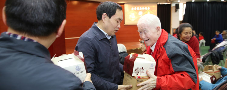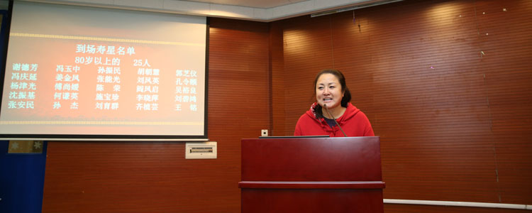 方妍书记宣读八十岁以上老同志以及六十岁以上年龄逢五逢十的寿星名单,向他们致以生日的祝福。在欢快热烈的乐曲声中,领导同志把生日蛋糕和纪念品发到寿星们手里。