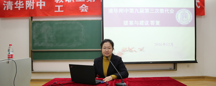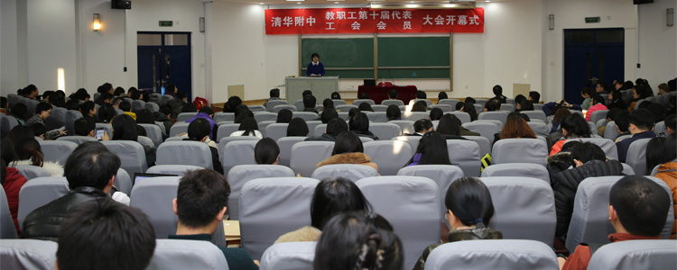 2016年12月15日下午,bg真人试玩第十届教职工代表大会第一次会议暨工会会员大会开幕式在B208会议室举行。bg真人试玩工会主席、党委副书记张洁主持开幕式,附中全体教职员工约390人参会。
