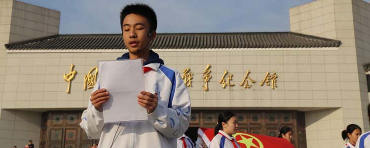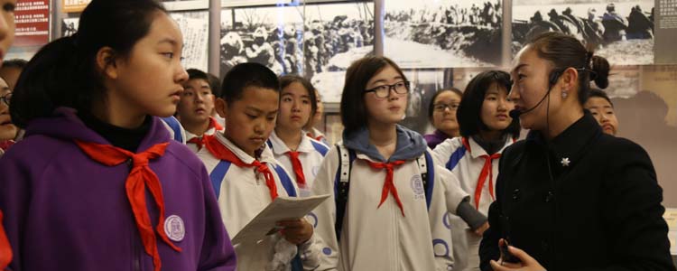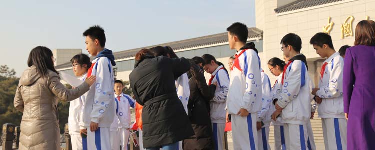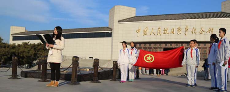12月16日,bg真人娱乐初15级组织学生参观抗日战争纪念馆,并在此举行了新团员入团宣誓仪式。学生发展中心副主任王田、初15级年级组长张彪,初15级班主任及全体师生共600余人参加活动。