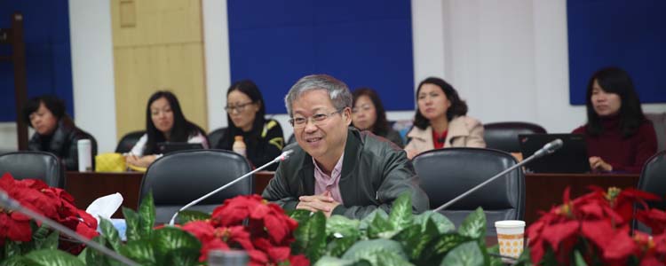 12月8日上午,bg真人娱乐语文组教师与著名学者、作家鲍鹏山教授就“经典阅读如何开展”在B102进行座谈会。座谈会由语文组教研组长邹明老师主持,副校长白雪峰、徐文兵,资源保障中心主任徐慧琳,语文教研组副组长邱晓云出席会议,全体语文老师共41人参加座谈会。