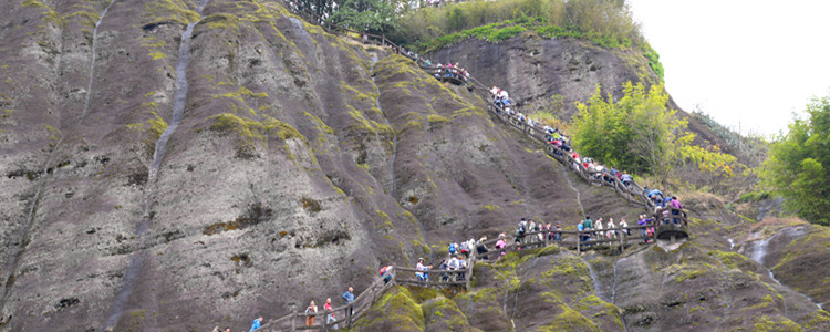 午饭后再次来到武夷脚下,同学们的目标投向虎啸岩。今天的风没有造就虎啸狮吼,但倏然忆起《倚天屠龙记》里一句“宝刀屠龙号令群雄,倚天一出谁与争锋”,脑海里回荡着金毛狮王的狮吼,似乎当真看到了风吹石走,悬崖伫立,一声如雷怒吼。
