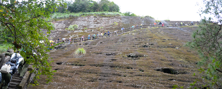 “天游峰”八百多个台阶,愈攀愈陡,最终站在天游顶峰,俯瞰九曲溪。可见云霭将连绵的山脉揽入怀中,水汽到卷云的渐变竟如此自然,湿润的空气中弥漫着林间的清香,大家都看呆了看醉了。