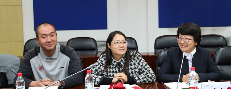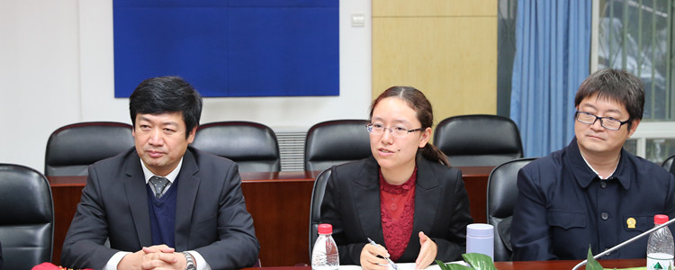 白雪峰副校长(左1)、朱莹老师(中)、胡军老师(右1)出席座谈会并发言