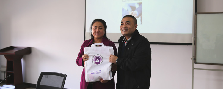 方妍书记(左)向苗齐田副总裁赠送bg真人娱乐纪念品以示感谢