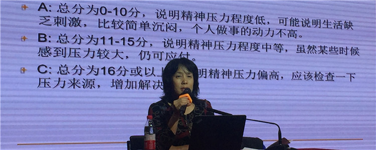 本次讲座由清华大学心理咨询中心副主任刘丹主讲,刘丹博士毕业于北京大学心理学系临床心理学专业,具有非常丰富的大学生心理及家庭治疗的经验,擅长青少年心理咨询与家庭治疗。在讲座中,刘丹首先通过问题导入课堂,教会同学们正确的看待压力,随后,她重点介绍了减压的5种最佳方法,分别是综合平衡六维表、目标管理、身体运动、人际沟通、环境干预,并带领同学们进行了现场体验。整个会场师生互动,自始至终洋溢着一种轻松、热烈的气氛,不时赢得学生阵阵掌声,讲座内容深入浅出、通俗易懂,对于学生增强自信心、缓解考试焦虑、学会自我调适有重要意义。