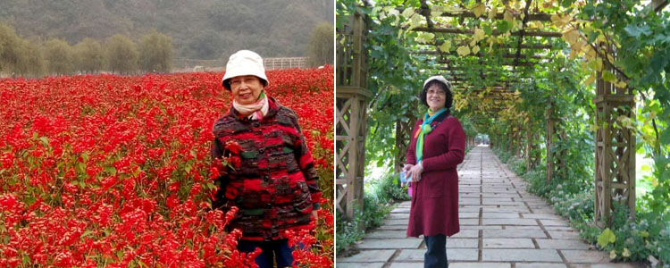 大家先来到人间花海。在庄园入口处的崖壁下留影,然后进去游览。人间花海薰衣草庄园位于密云区车道峪村,景区四面环山,犹如桃源仙境,种植了薰衣草、马鞭草、玫瑰等数十种花卉,虽然时值深秋,各种花卉多已凋谢,这里清新的空气,优雅的环境也足以使人心情舒畅。更有苹果采摘,又给老师们增加了一点田园的乐趣。