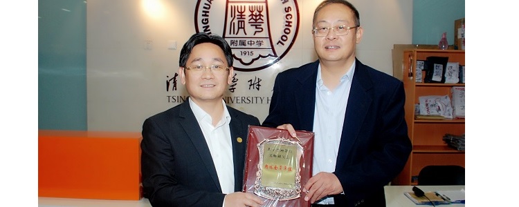 朱建宏校长(左)接受赵刚秘书长(右)授牌