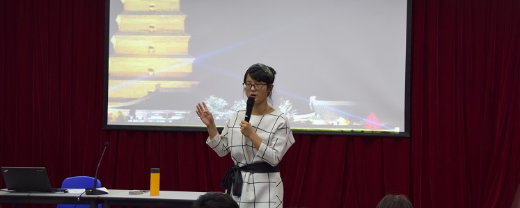 首先开讲的是语文教师蒋亚利,她以大雁塔为示范,分别从文化寓意、语言内涵、典故传说、诗句赏鉴四个角度加以阐述,巧妙结合奥森校区门前石狮以及课文所学进行生动举例,带领学生感受大雁塔的文化积淀、俗语传说、名家诗篇,幽默活泼、引人入胜,勾起了学生对大雁塔的向往。