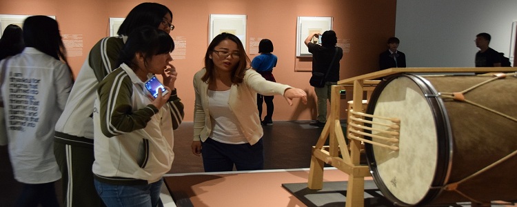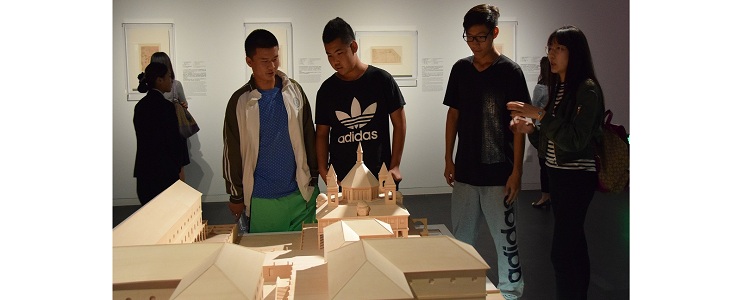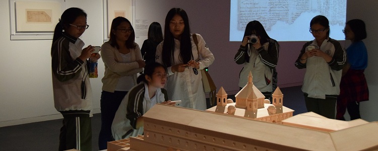 同学们在老师的带领下,首先来到位于博物馆一层的特展:“对话达·芬奇——第四届艺术与科学国际作品展”参观。国务院副总理刘延东在博物馆开馆初也曾亲临参观,可见展览在文化艺术领域的重要分量。展览囊括了列奥纳多·达·芬奇的60幅《大西洋古抄本》手稿真迹、装置模型和《最后的晚餐》(约1611-1616,维斯皮诺临摹)。这是达·芬奇真迹首次在境外的最大规模展览。展览呈现了当代国际艺术与科学领域最新的艺术作品,诠释了科学如何与艺术进行优雅而完美的结合,开拓了认识,增强了思维的发散性。同学们在清华大学美术学院助教的讲解中进行了细致的参观。