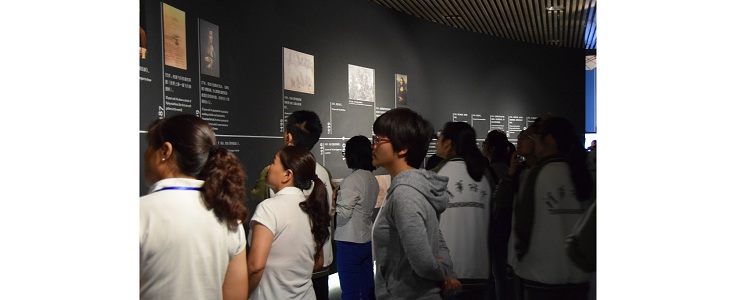 走出特展展厅,同学们又参观了博物馆的多个常设展览与临时展览,展览内容为清华大学最具代表性的、具有很高文化研究价值的藏品。其中临时展出的“竹简上的经典”——清华简文献展中展出了闻名遐迩的“清华简”。“清华简”属战国中期楚墓出土文物,数量一共约有2500枚(包括少数残断简),总字数近6万字,以经、史类经典为主。由于其在秦之前就被埋入地下,未受到“焚书坑儒”的冲击,所以能够最大限度地呈现先秦古籍的原貌。对于了解中华文明的初期面貌和发展脉络,研究简牍形制和古文字等方面具有重要价值。