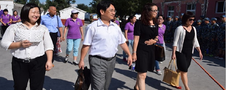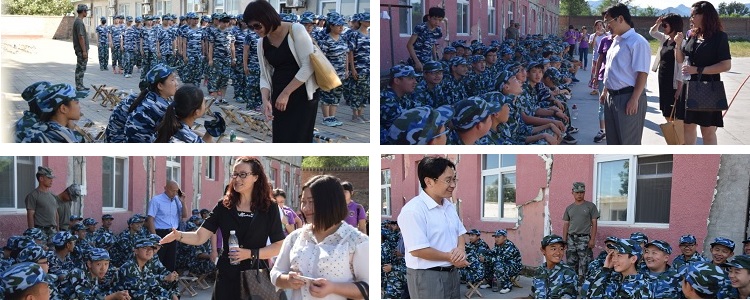 9月5日,是bg真人娱乐将台路校区首批“1+3”新生军训的第五天。当天下午15点,执行校长朱建宏,副校长张姝敏、程惠云,学生发展中心副主任陈卫东、学校办公室副主任程玮琳以及将台路校区初三年级助理贺清灿前往昌平某军训基地慰问看望参训师生。