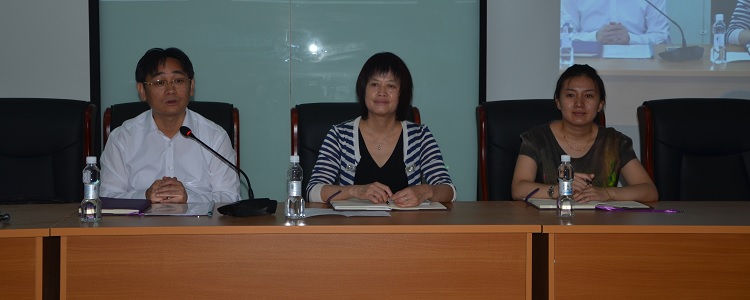 执行校长朱建宏(左)、副校长程惠云(中)、学生发展中心主任董薇(右)出席会议