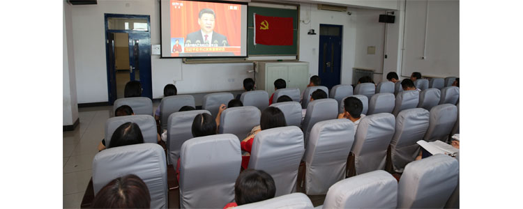 全体参会人员佩戴党徽准时收看,会后党员们纷纷发表感言。邱晓云老师表示:中国共产党带领中国人民求解放,求发展,波澜壮阔95年,让中国人民站起来,富起来,强起来!为党创造的民族发展奇迹而骄傲。作为一名普通党员,我将爱岗敬业,为党的事业奉献自己的全部力量!张馨月老师提出:从历史学科的角度来看,这次大会强调的“三个不动摇”非常明确而重要,这提醒我们文科类的党员老师,一定要利用好自己的阵地,向学生传达党中央的意志与历史的真谛,面对多样纷繁的社会思潮,我们先要从自身做起,坚定信念,再传达给周边的人正能量:历史和人民选择中国共产党领导中华民族伟大复兴的事业是正确的,必须长期坚持、永不动摇;中国共产党领导中国人民开辟的中国特色社会主义道路是正确的,必须长期坚持、永不动摇;中国共产党和中国人民扎根中国大地、吸纳人类文明优秀成果、独立自主实现国家发展的战略是正确的,必须长期坚持、永不动摇。