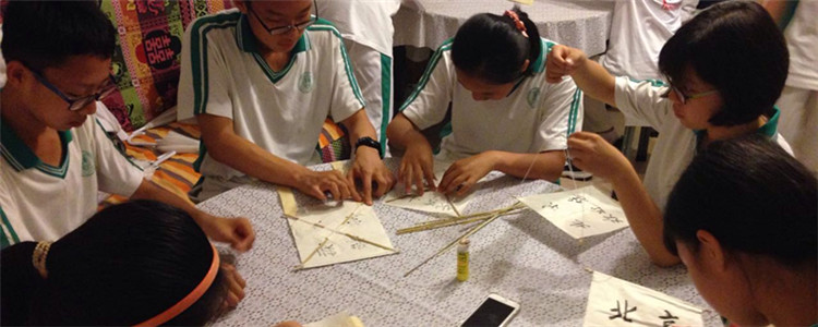 学生学做风筝
