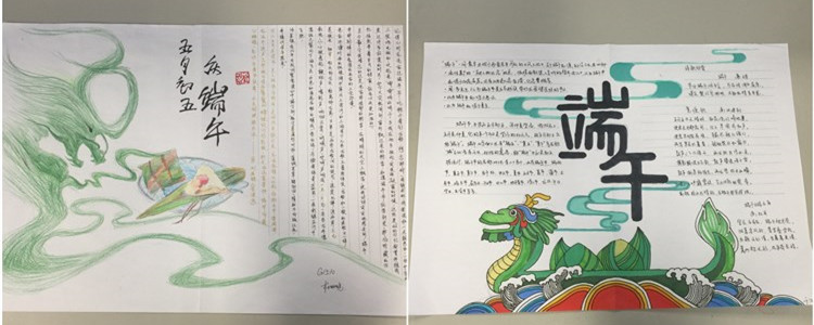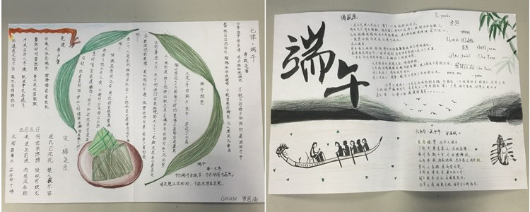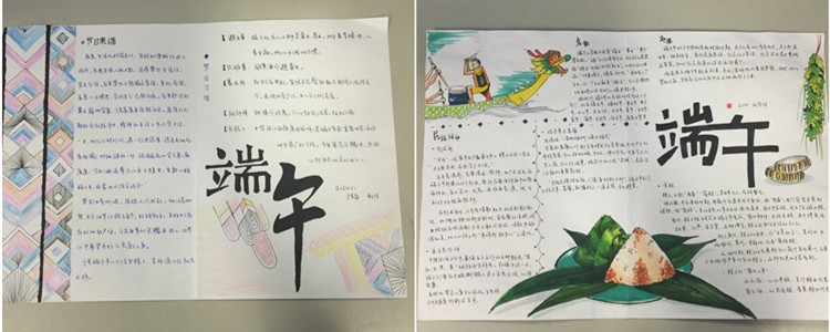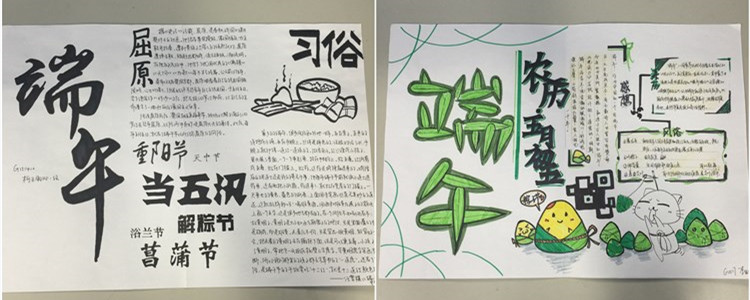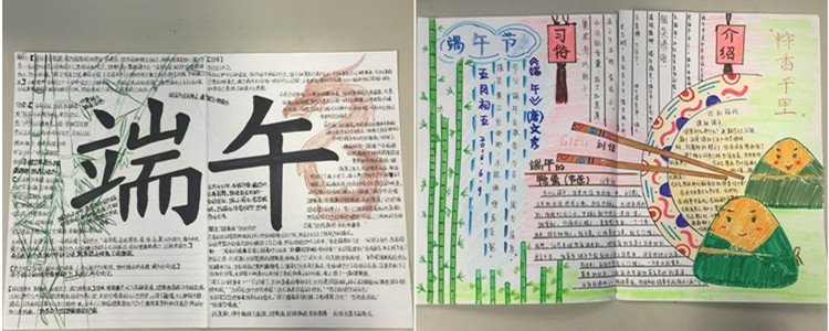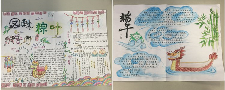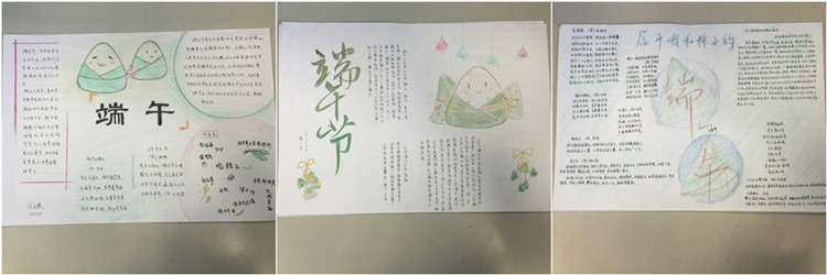 手抄报统一使用学校下发的A3纸张,要求单面设计,主题鲜明,内容丰富,图文并茂,色彩协调,且有自己的原创作品。同学们利用端午假期的时间进行资料收集与制作,于6月13日上交了自己的作品。