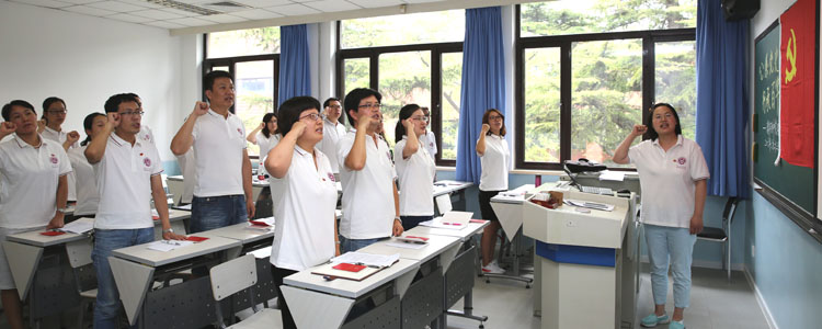 附中全体参会党员统一着装,佩戴党徽,面向党旗重温入党誓词,以庄严隆重的气氛开启党课。附中党委副书记张洁从清华园的第一个党支部建立开始谈起,详细介绍了清华大学党组织的发展历程与优良传统。在我们每天工作和生活的无比熟悉的清华园,跨越历史的长河,曾经发生的那些革命先烈的英勇事迹使每一位党员感到无比振奋。