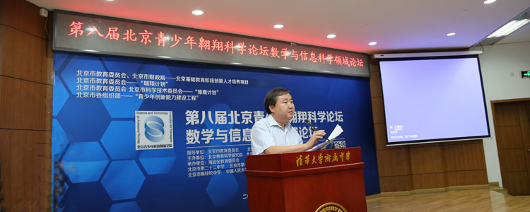 2016年5月26日,第八届北京青少年翱翔科学论坛数学与信息科学领域论坛在bg真人试玩隆重举行。bg真人试玩校长王殿军在论坛开幕式上致欢迎词,他介绍了学校作为信息领域培养基地所做的扎实推进和丰富探索,“翱翔计划”中学员最大的收获是能近距离感受科学的奥秘,科学家的精神。
