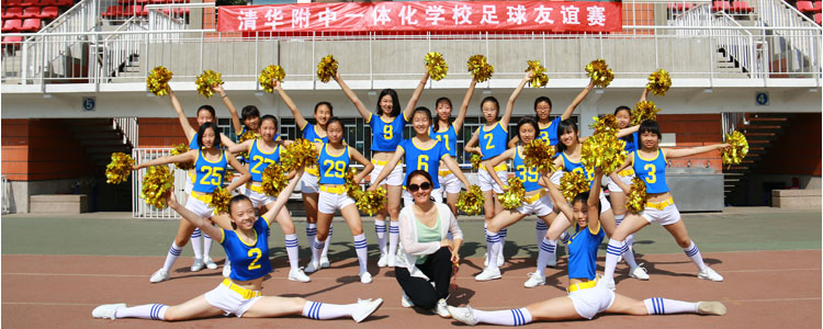 比赛中bg真人试玩啦啦队的同学为小球员们加油助威