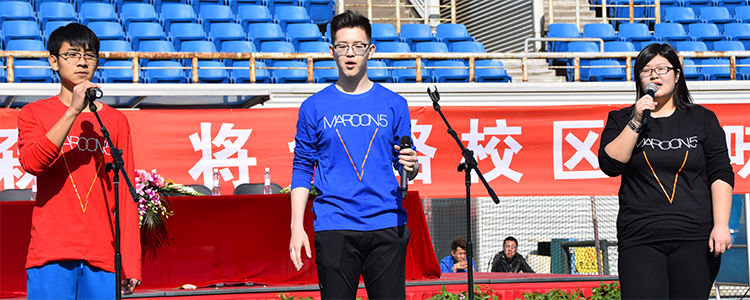 奥森、将台路校区学生赵子辰、王居正和于穆晴演唱《Lost Stars》