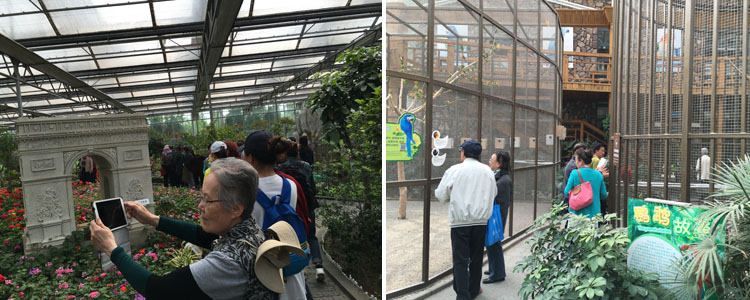 之后,老教师们来到南宫生态园,参观了五洲植物园、鹦鹉园、椰林垂钓园等景区,其中五洲植物园稀有植物品种繁多,园林设计新颖独特,园内空气清新,犹如进入了天然氧吧,给大家留下了深刻的印象。鹦鹉园展示的鹦鹉品种有一百多种,看到七百多只羽毛鲜艳,体态各一的鹦鹉在园中嬉戏,本身就是件赏心悦目的事情;再听到一声声悦耳的鸟鸣,更让人心旷神怡;尤其吸引人的是那些善学人语的鹦鹉,会用它们独有的方式对游客表示欢迎,“你好”“几点了”“恭喜发财”“再见”,一声声问候引来不少人驻足围观。