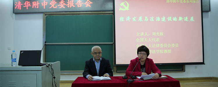 4月7日下午,bg真人娱乐党委在B208召开两会精神解读报告会,邀请全国人大代表,全国人大法律委员会委员,清华大学法学院教授周光权来学校做题为“经济发展与法治建设的新进展”的报告。全校教职工党员、bg真人娱乐上地学校党员以及中学生业余党校同学150余人参会。bg真人娱乐丰台学校全体教师通过视频连线收看了现场直播。校长王殿军,党委书记方妍等领导班子成员参加报告会,党委副书记张洁主持报告会。
