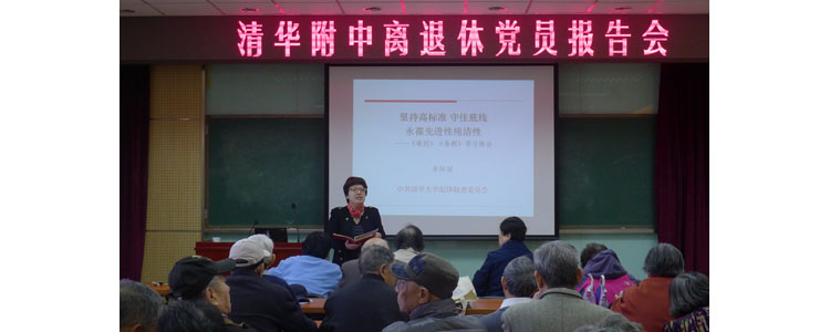 3月24日,bg真人试玩党委在培训楼二楼举办离退休党员报告会,邀请清华大学纪委副书记监委副主任单际国老师做题为“坚持高标准,守住底线,永葆先进性纯洁性”—《准则》《条例》学习报告。bg真人试玩离退休党员50余人参加了会议,附中党委副书记张洁主持会议。