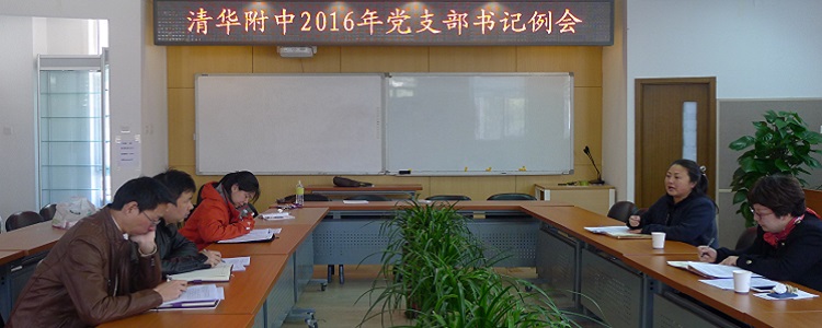 3月24日,bg真人娱乐党委在行政楼G101召开党支部书记例会,部署2016年党委工作计划,并学习“两学一做”教育方案。党委副书记张洁主持会议,附中离退休与在职共12位党支部书记参会。党委书记方妍出席。